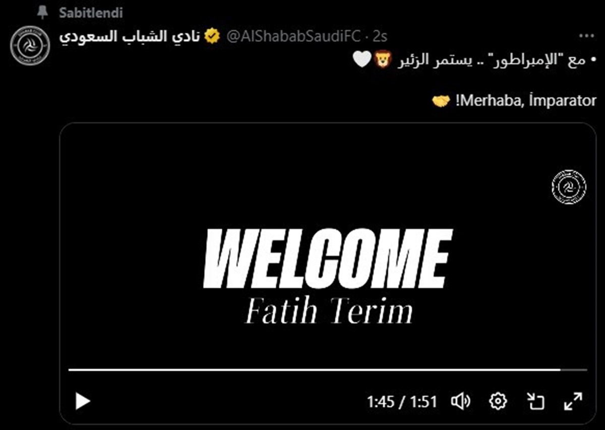 Suudi Arabistan Pro Lig ekibi Al Shabab, Türk futbolunun deneyimli teknik direktörlerinden Fatih Terim'le anlaştıklarını açıkladı.Son olarak Panathinaikos'u çalıştıran 71 yaşındaki Fatih Terim, kariyerinde yeni bir sayfa açıyor. Suudi Arabistan Pro Lig ekibi Al Shabab, Fatih Terim ile anlaşma sağladıklarını duyurdu. Anlaşmaya göre Terim 6 ay boyunca Al-Shabab'ı çalıştıracak.Suudi Arabistan ekibi sosyal medya hesabından paylaştığı videoda Türkçe olarak, "Merhaba, İmparator" ifadelerini kullandı. Suudi Arabistan Ligi'nde oynanan 13 maçın ardından Al Shabab, 7 galibiyet, 2 beraberlik ve 4 yenilgiyle 23 puan topladı. Riyad ekibi ligde 6. sırada yer alıyor. 71 yaşındaki Terim son olarak Yunanistan Ligi ekibi Panathinaikos'ı çalıştırmıştı.