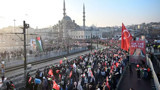 İstanbul'da Galata Köprüsü'nde Gazze için tarihi yürüyüş